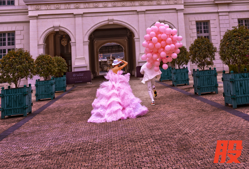 2. 场地选择,建议女孩子们在拍摄的时候选择一些INS风的建筑物,简约时尚的背景会让人物突出,为整体画面带来干净舒适的观看享受,与我们穿着的服装风格也相得益彰。可以根据自己服装的颜色来选择,像图片中模特身穿粉色裙子,背景也选用粉色,看起来自然就非常舒服。