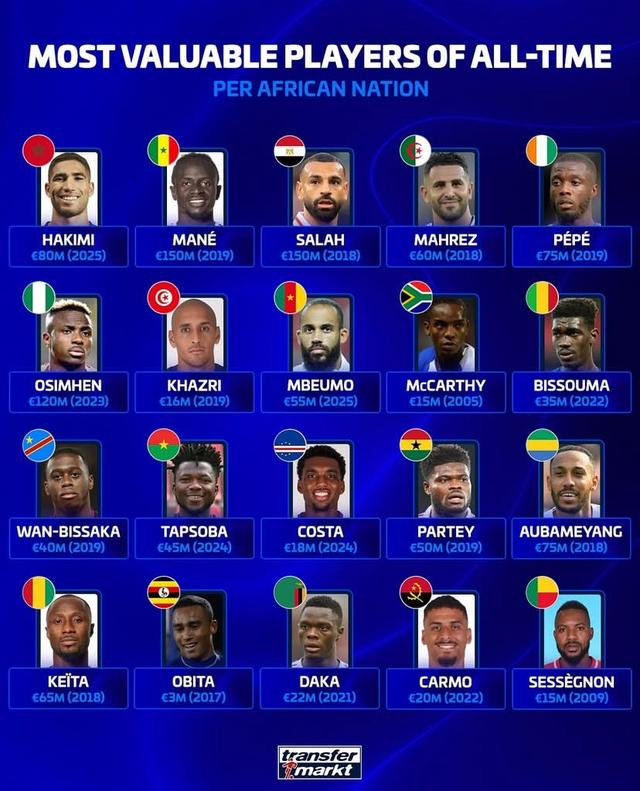 北京时间10月14日,德转统计出了非洲各国球员历史的最高身价,埃及的与塞内加尔的马内身价都曾经达到1.5亿欧元高居第一万盈配资,奥斯梅恩1.2亿欧元排名第三。