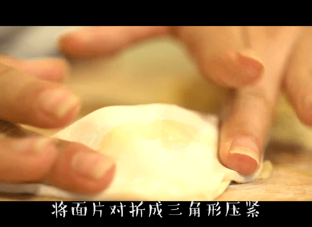 3,将面片对折成三角形,两边压紧